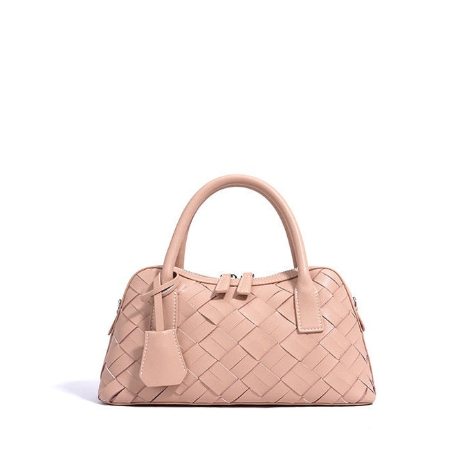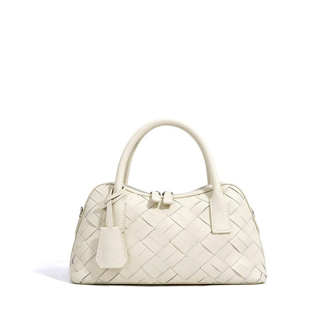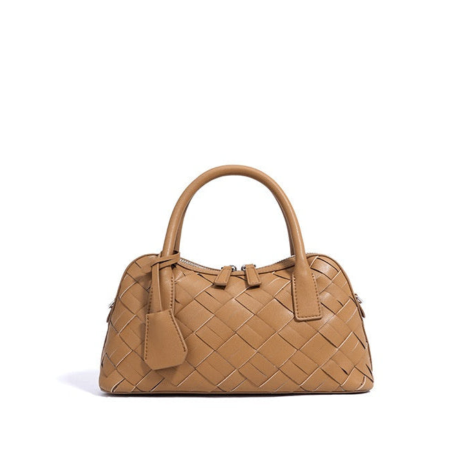 A study in form and texture, the Kendall Woven Leather Handbag is constructed from precisely interlaced strips of smooth leather. This meticulous weaving technique creates a soft, pliable structure that holds its deliberate shape. The clean-lined silhouette is completed with a discreet magnetic closure, allowing the material's inherent character to remain the focus.